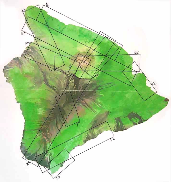 Here is the coverage of the swathes, as well as i could guess, by using image feature comparison to a known high-resolution whole-island image:
